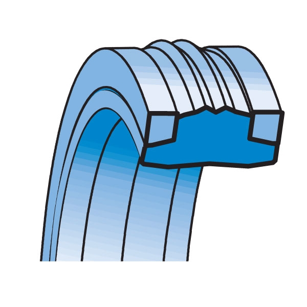 Amongst the compact piston seal series, the KDAE Piston Seal type is designed with a central polyurethane element and two side anti-extrusion rings. The assembly between the polyurethane element with high elastic modulus and the two elastomer rings with high hardness enhances stability of the sealing even at heavy duty applications. Compared to rubber, the abrasion is also reduced due to the use of polyurethane, therefore extending the service life of the seal in the system. Abrasion is also considerably reduced, thus facilitating the construction of the seat and bores, due to the special geometry of the seal itself better performing than NBR.