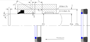 Note: Clearance gap F is the maximum permissable. i.e. gap completely on one side, in the temperature range of -30°C to 100°C The use of a suitably selected Claron bearing ring will effectively reduce the clearance gap F max. to a value closer to F/2 thus increasing the pressure capability of the seal.