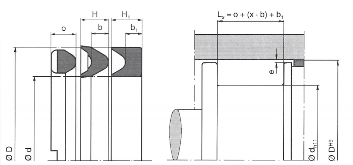 Due to the relatively low elasticity of the fabric chevrons, an installation groove that is open on one side must be provided. During installation seals must not be drawn over sharp edges, thus avoiding damaging the sealing lips.