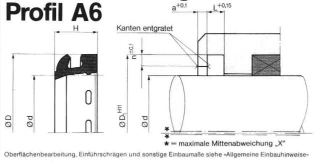 The function of the Prädifa wiper rings profile A6 is to prevent dust, dirt, grains of sand, and metal swarf from penetrating the dynamic rod guidance with increased radial clearance. This is achieved by a special design that largely prevents the development of chamfers, protects the guiding parts, and extends the working life of the seals. The wiper provides a technically accurate closure. No screw-rings or brackets are required for instaLlation. No close tolerances are necessary. It allows the effective scraping of the rod, even in the case of eccentricity “x” of up to 1,5 mm. according to the rod diameter.
