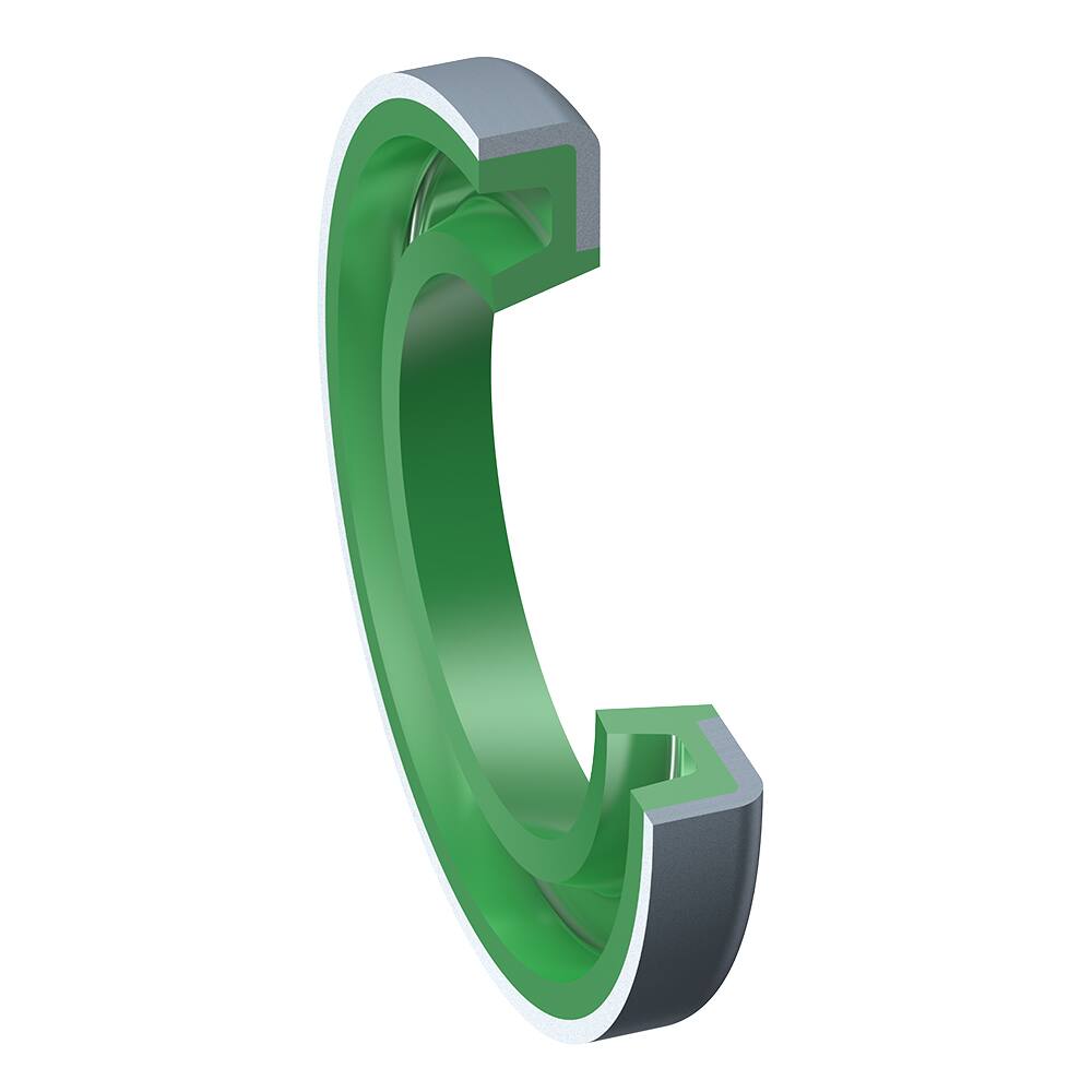 In addition, the wiper lip opens up during lubrication and allows excess grease to escape. The proven P5008 polyurethane compound stands for abrasion resistance, minor permanent deformation, and robustness against external mechanical impact. The wiper is securely held in place in the axially open groove via press-fit of the metal jacket vis-à-vis the inner groove diameter. As the wiper lip is flush with the rod eye it is largely protected against external mechanical damage.